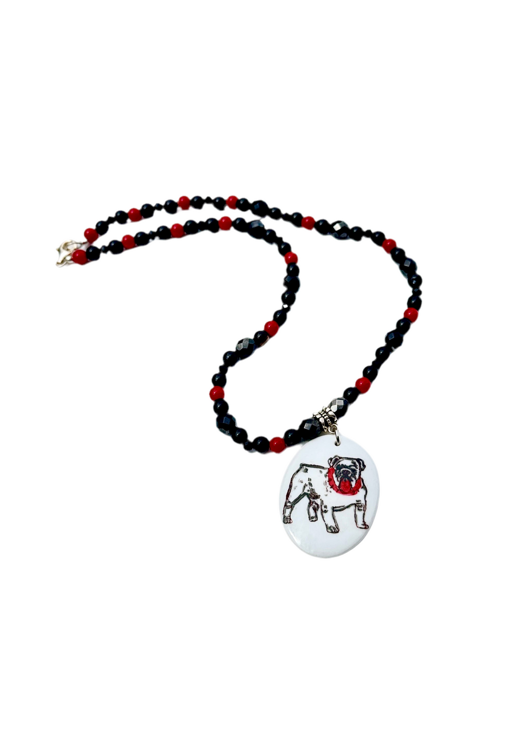 Bulldog Porcelain Pendant Game Day Necklace Beaded Mascot Jewelry Football College