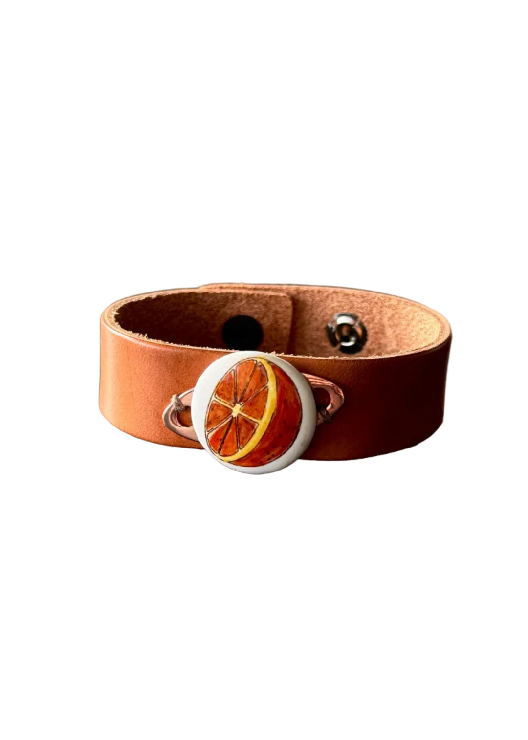 Orange Slice Porcelain Pendant Leather Wrap Bracelet