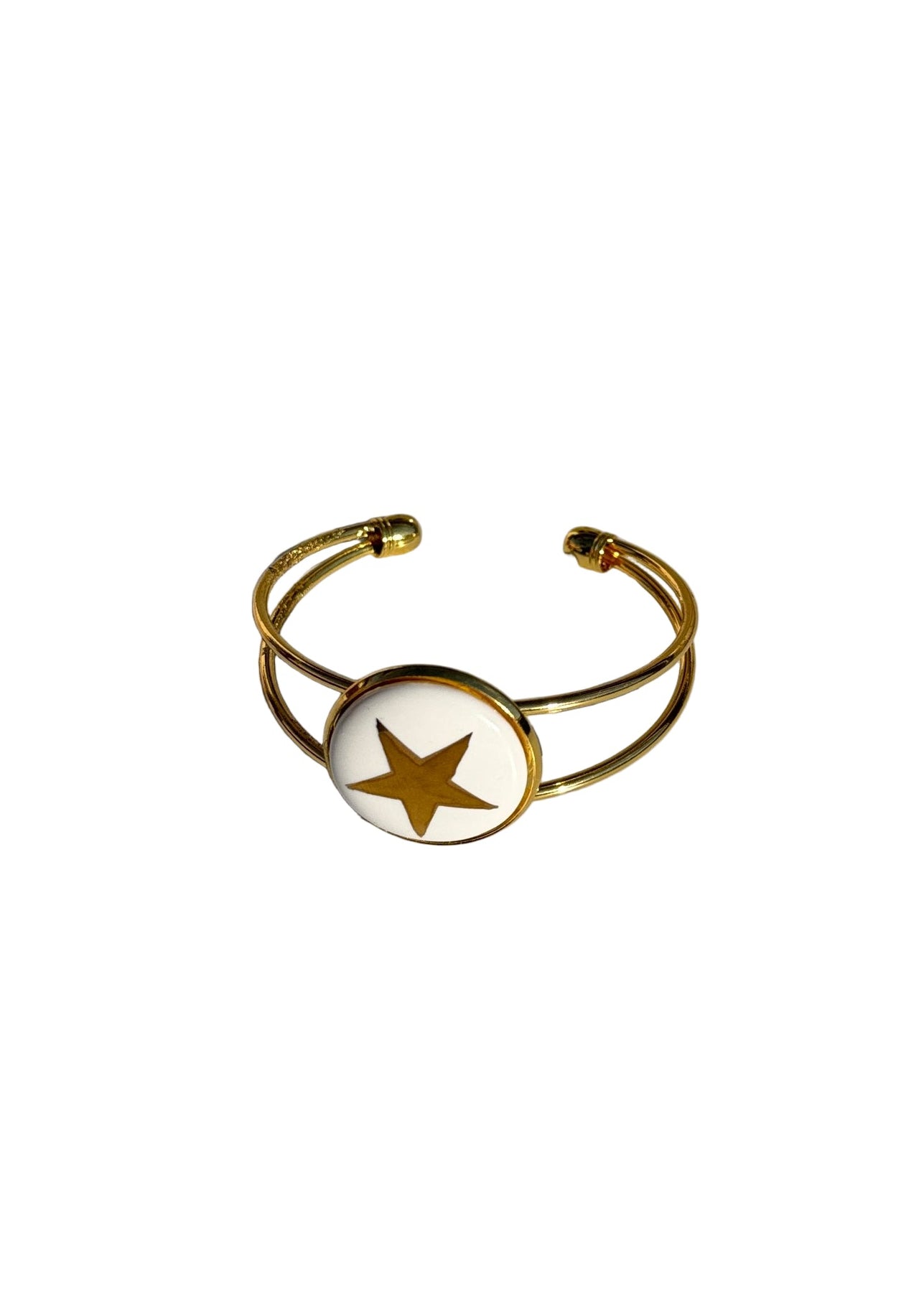 Shine bright with our Gold Star Adjustable Cuff Bracelet. This elegant cuff features a radiant gold star charm at its center, creating a timeless statement piece that complements any look. The adjustable design ensures a comfortable, custom fit for any wrist. Perfect for adding a touch of celestial sparkle to your everyday style or gifting to someone who lights up your life.
