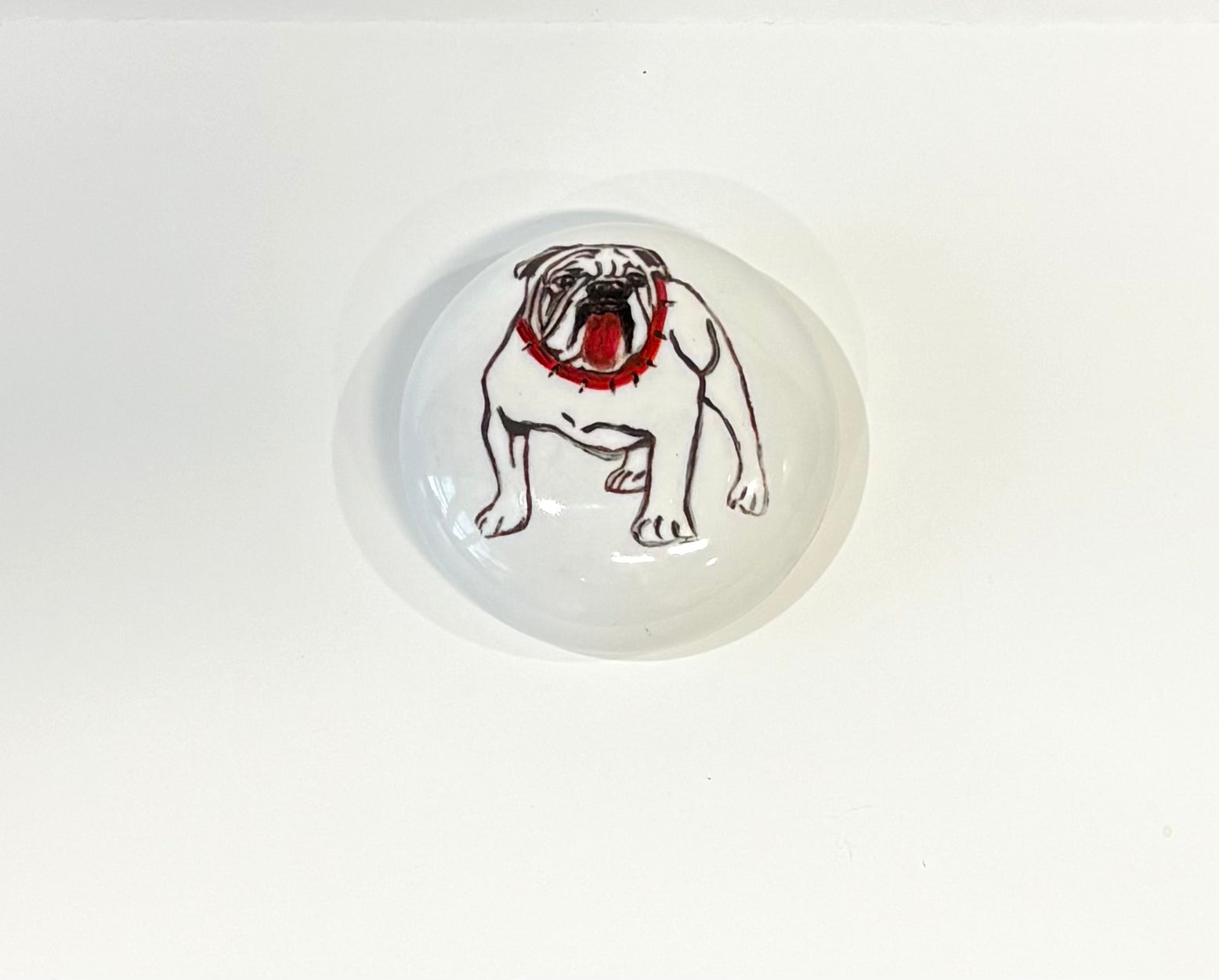 Add a touch of team spirit to your desk or display with this 3-inch round porcelain paperweight, hand-painted with a detailed bulldog design. A functional and decorative piece, it blends artisanal craftsmanship with bold fan pride, perfect for Bulldogs enthusiasts or collectors of handcrafted décor.