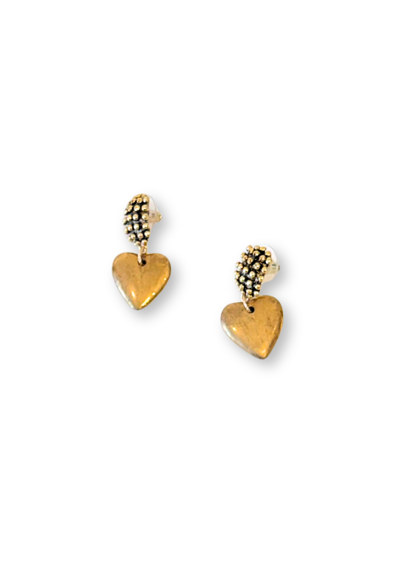 These elegant stud earrings feature delicate gold dots paired with charming gold hearts for a timeless, feminine touch. Simple yet meaningful, they offer a refined look that’s perfect for everyday wear or gifting. Lightweight and classic, they add a subtle hint of warmth and romance to any outfit.