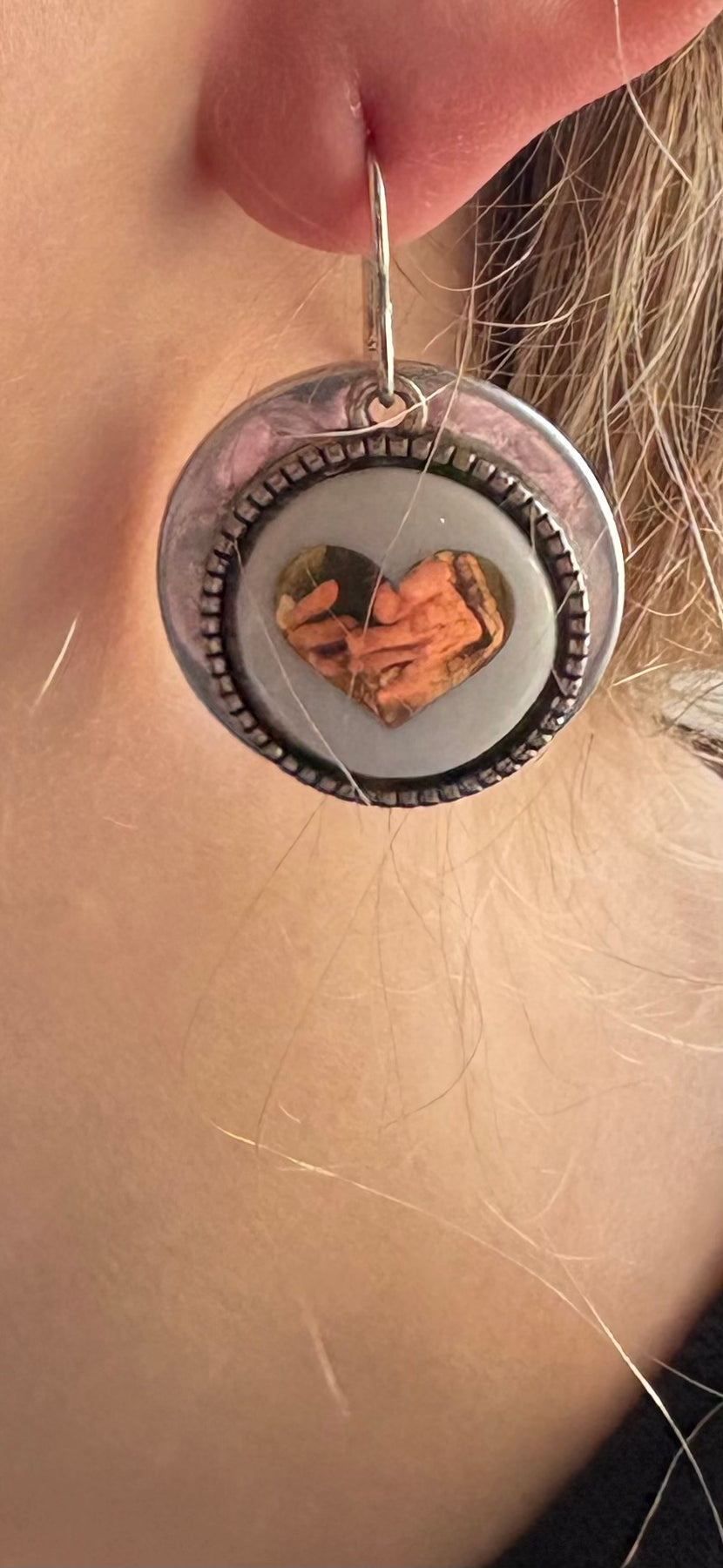 Gold Hearts on Silver Circle Earrings