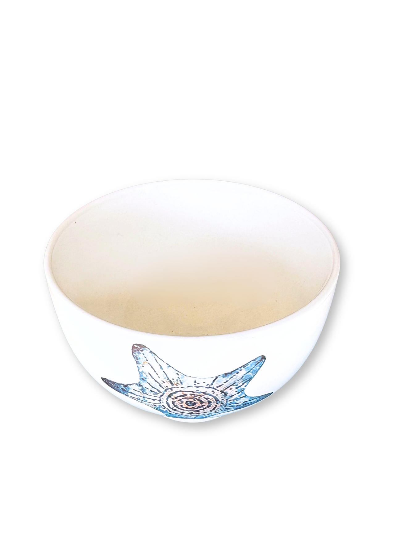 Bring a touch of seaside charm to your table with this porcelain bowl featuring a beautifully detailed blue starfish. Layered ocean tones with subtle hints of sandy warmth create depth and texture, capturing the natural beauty of the shore.