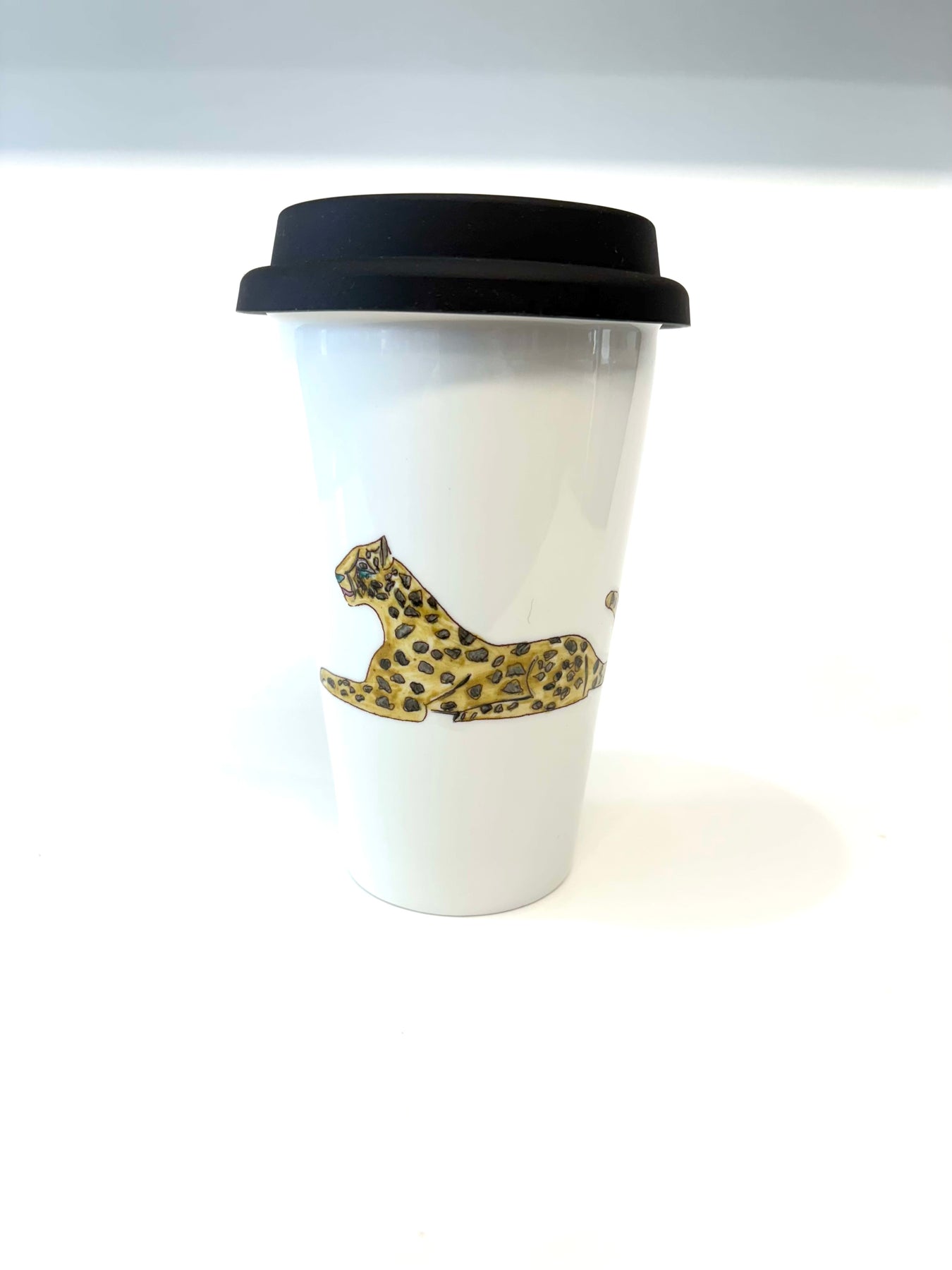 Enjoy your favorite beverage in style with this white porcelain insulated coffee mug, featuring a beautifully hand-painted jaguar. Designed to keep drinks at the perfect temperature, it blends function with artistry for a standout piece that’s perfect for everyday use or gifting. Mug measures 5 1/2 H x 3 1/2 W and holds 11 ounces.