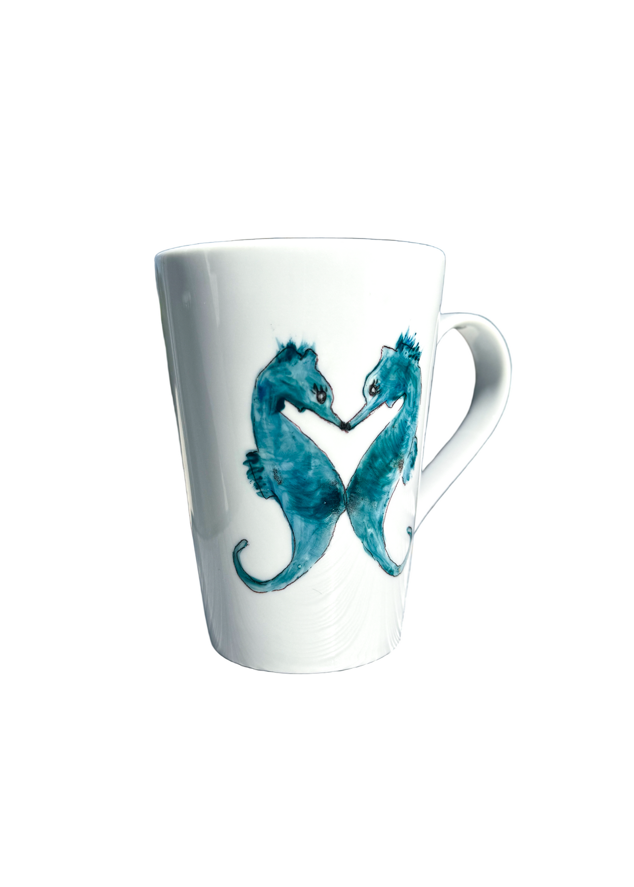 Bring a touch of seaside serenity to your day with the Coastal Seahorses Mug in Teal. This handcrafted porcelain mug features two gracefully painted teal seahorses, capturing the beauty of the ocean in every detail. Perfect for your morning latte or afternoon tea, it combines artistry with functionality. Durable and elegant, this mug makes a thoughtful gift for beach lovers and a charming addition to any coastal-inspired home.