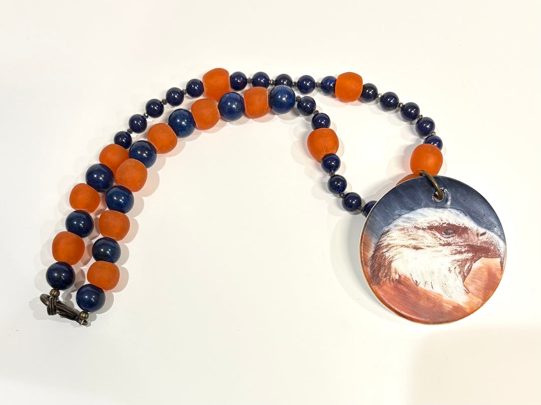 Hand-Painted Eagle Pendant Necklace