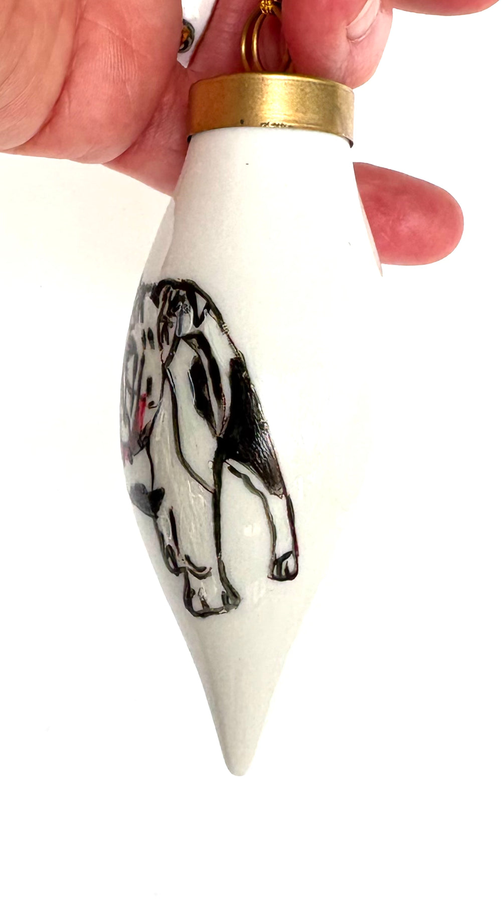 • Hand-Painted Bulldog in Red & Black on White Porcelain Teardrop Ornament
