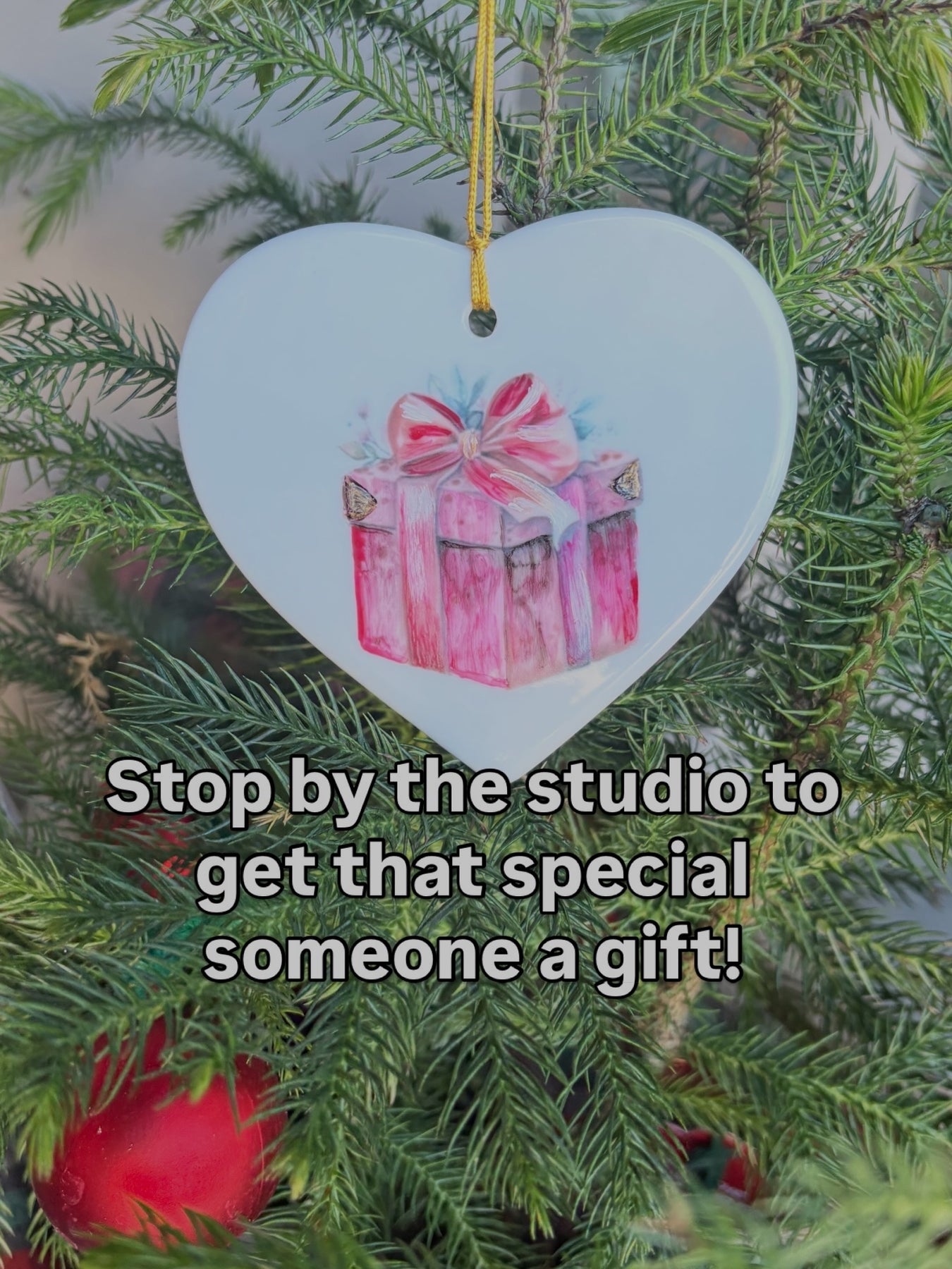 This charming white heart–shaped porcelain ornament features a delicately hand-painted package, making it a sweet symbol of giving, celebration, and thoughtful moments. Crafted with care and fired in a kiln for lasting beauty, its smooth white surface highlights the detailed artwork while maintaining a clean, timeless look. Measuring approximately 3 inches, this ornament is perfect for holiday décor, gift wrapping accents, or as a meaningful keepsake to celebrate special occasions. A lovely addition to any ornament collection and a heartfelt gift for those who cherish handcrafted details.