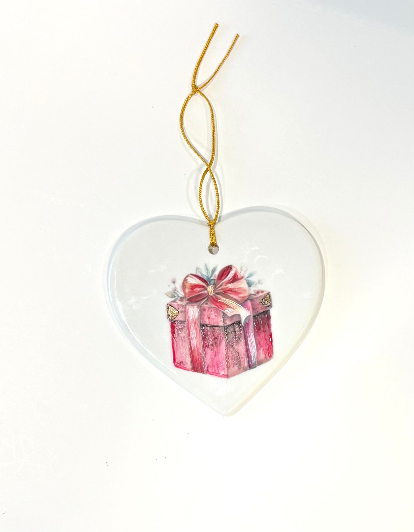 Hand-Painted Package Heart Porcelain Ornament