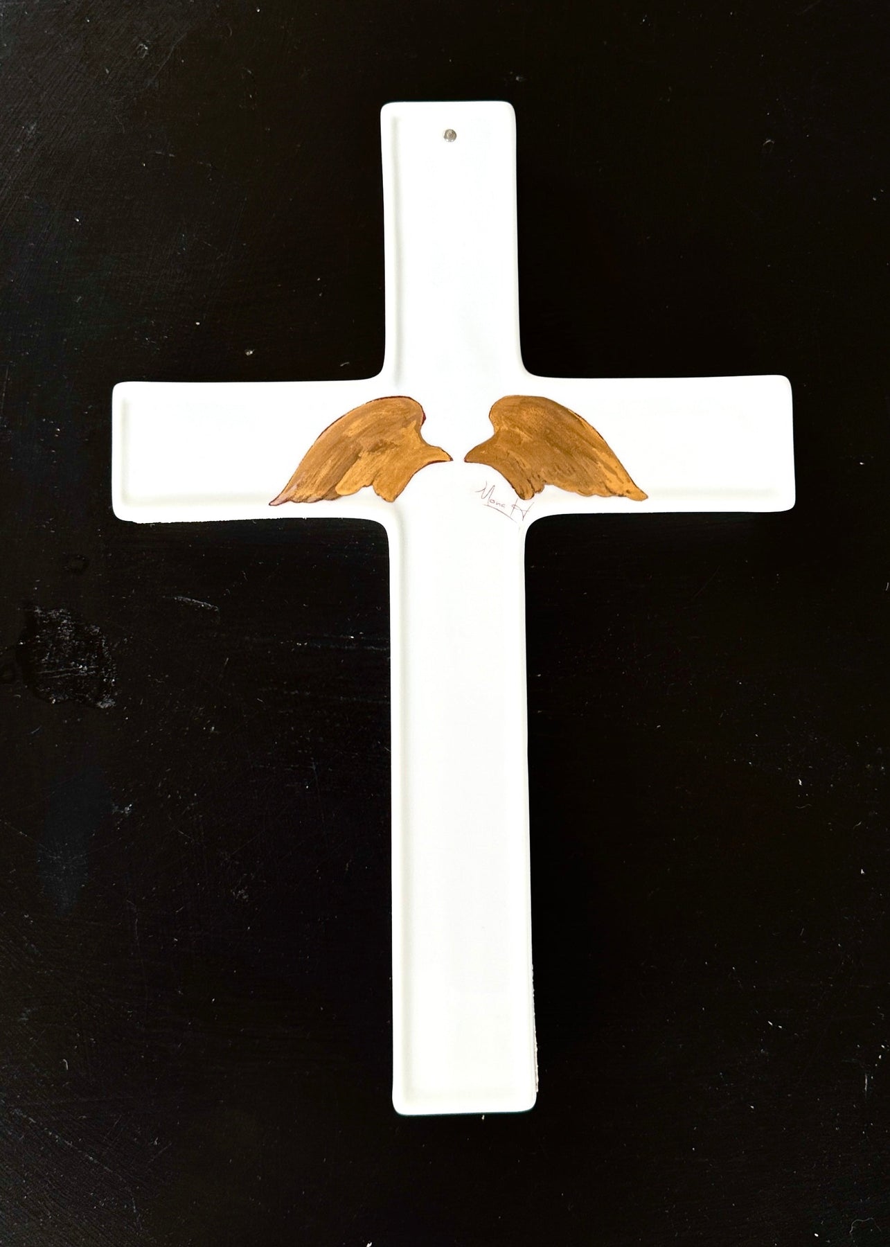 A quiet symbol of faith, this hand-glazed ceramic cross is finished in a soft ivory sheen and adorned with delicately painted gold wings at its center. Each brushstroke is intentional, giving the piece a sense of movement and grace—like protection gently unfolding. Designed to be both meaningful and beautiful, it’s a reminder of hope, comfort, and presence, meant to be displayed and lived with every day.