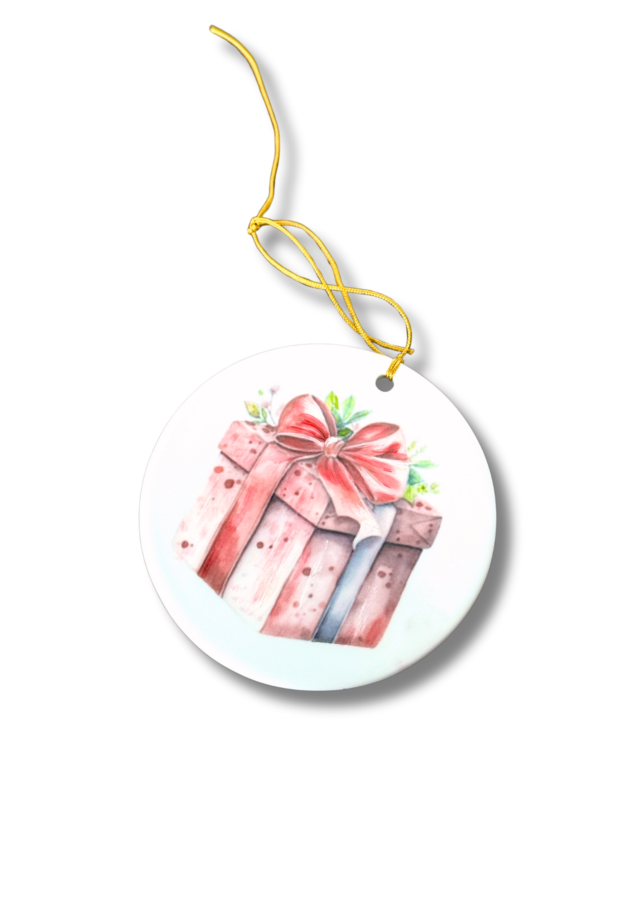 Enhance your holiday décor with this expertly crafted flat, round ornament featuring a vibrant red present design. Perfect for Christmas gifting and decoration, it adds a festive touch that celebrates the joy of giving during the season.